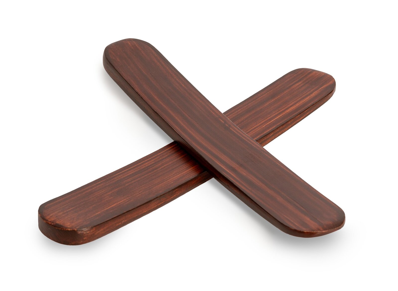 Percussive Irish folk instrument used to set and maintain rhythm and time, similar to the spoons. Made from high quality rosewood. Pair. Packaged in clear presentation tube with instructional leaflet.
