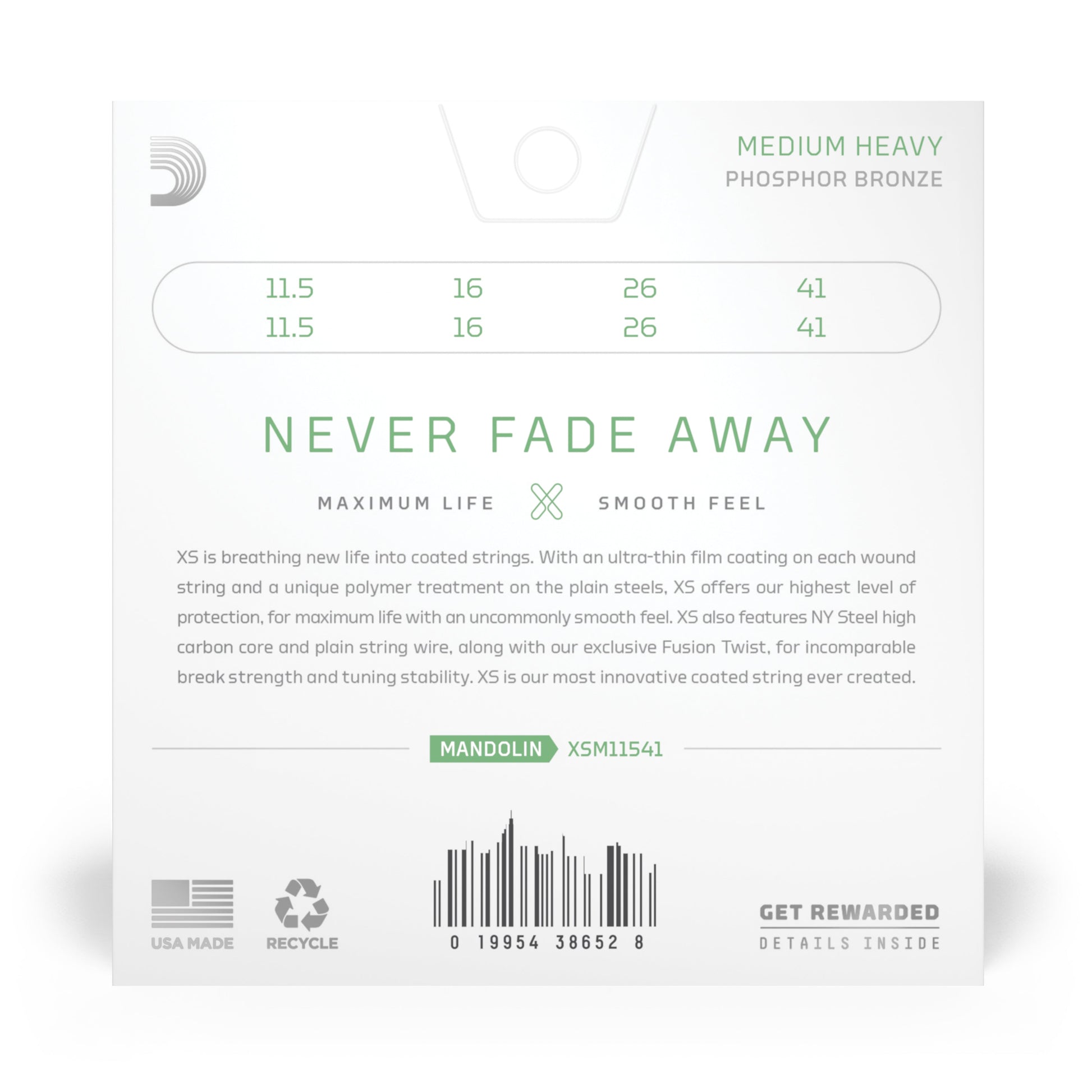 - XS Phosphor Bronze strings have the longest life of any D’Addario mandolin string, thanks to the ultra-thin XS film coating.