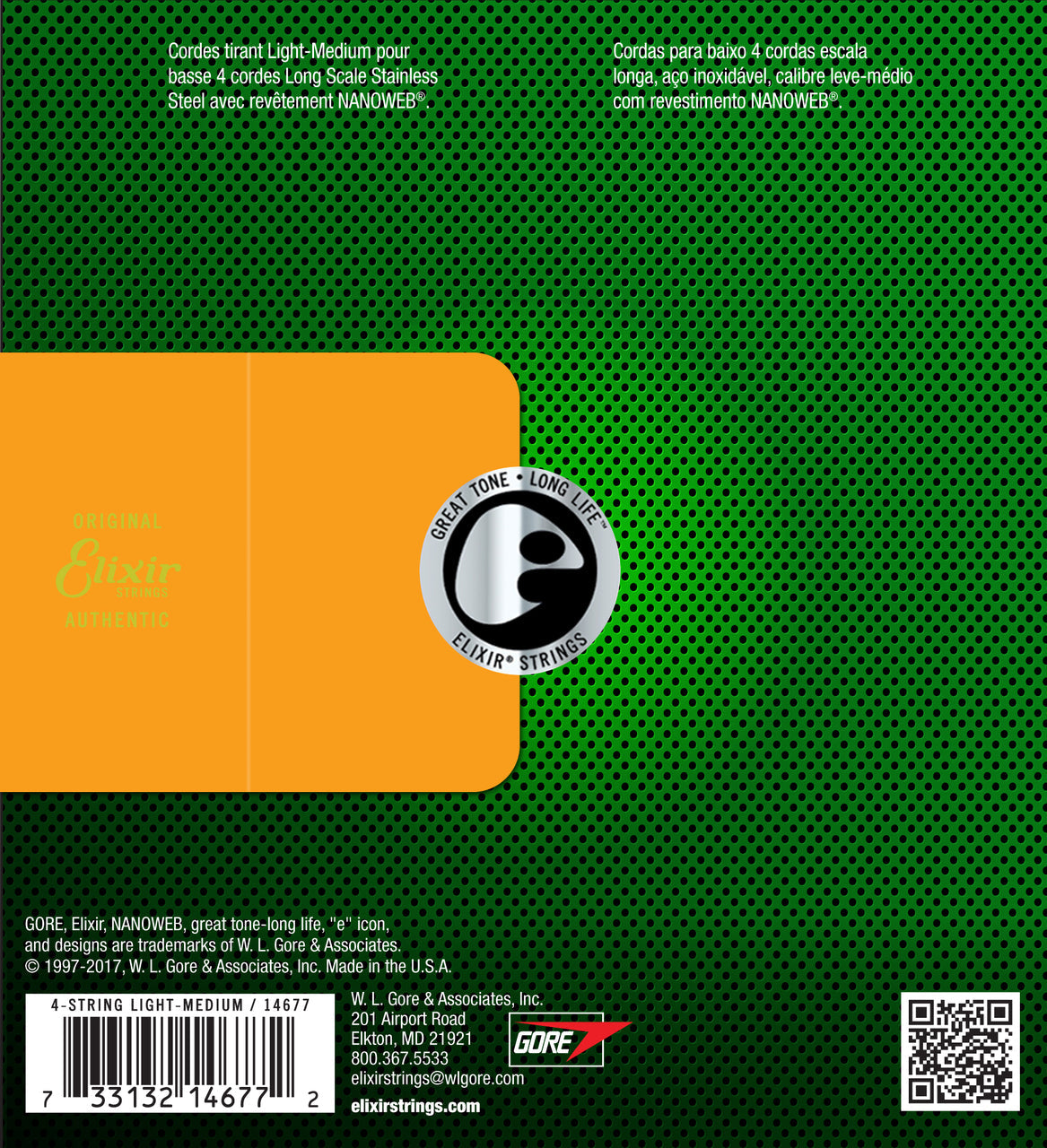 Elixir® Stainless Steel Bass Strings With a NANOWEB Coating provide a bRight stainless tone With deep lows.