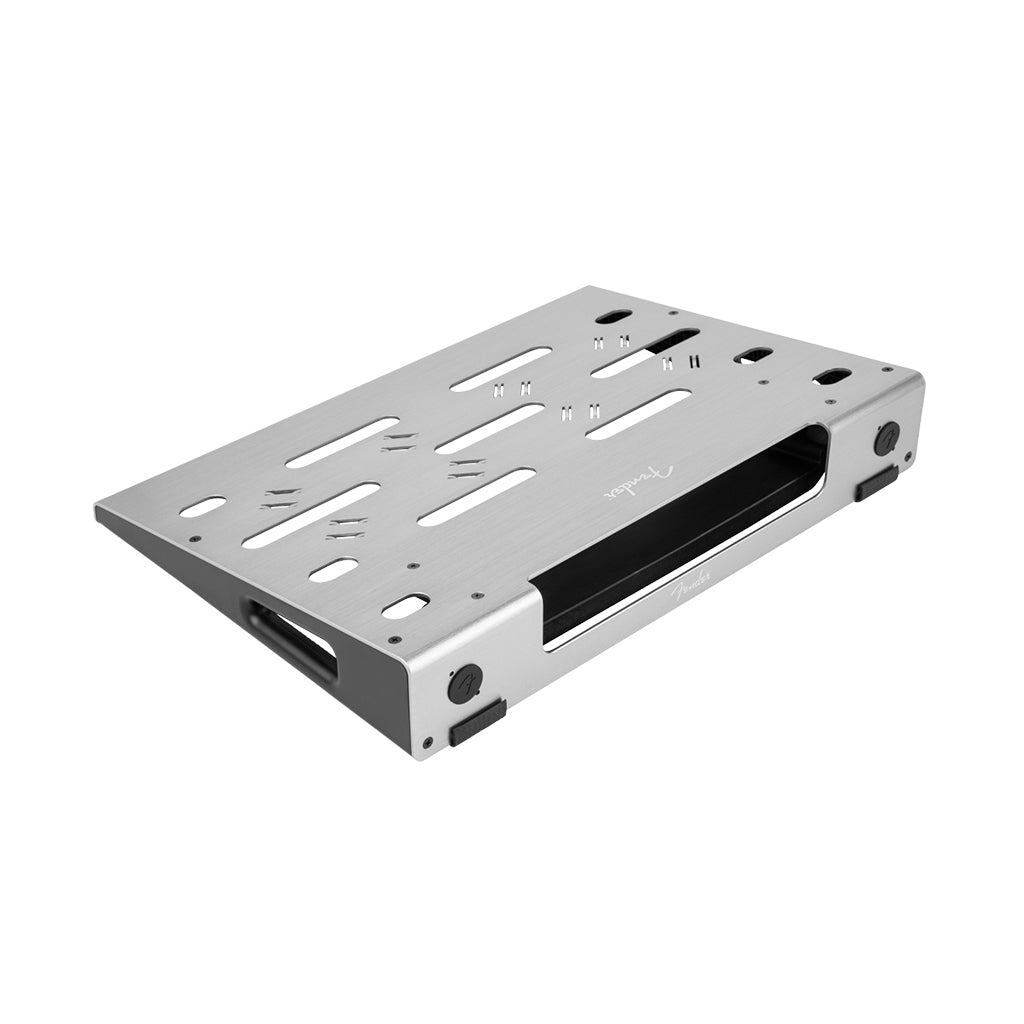 Surprisingly simple and remarkably versatile – the Fender® Professional Pedal Board delivers world-class performance and utility. The low-profile precision-machined anodized aluminum chassis is lightweight and strong enough to stand up to the rigors of the road, while the thoughtfully designed cable routing and management system allows you to keep things neat and tidy, even if your board is overflowing with pedals. Under the hood, a universal mounting bracket fits most popular pedal power-supplies – and is a perfect match for the Fender Engine Room series. The included soft case with storage pocket and cable ties will keep your pedals and accessories safe on the way to the gig, studio or any other destination.