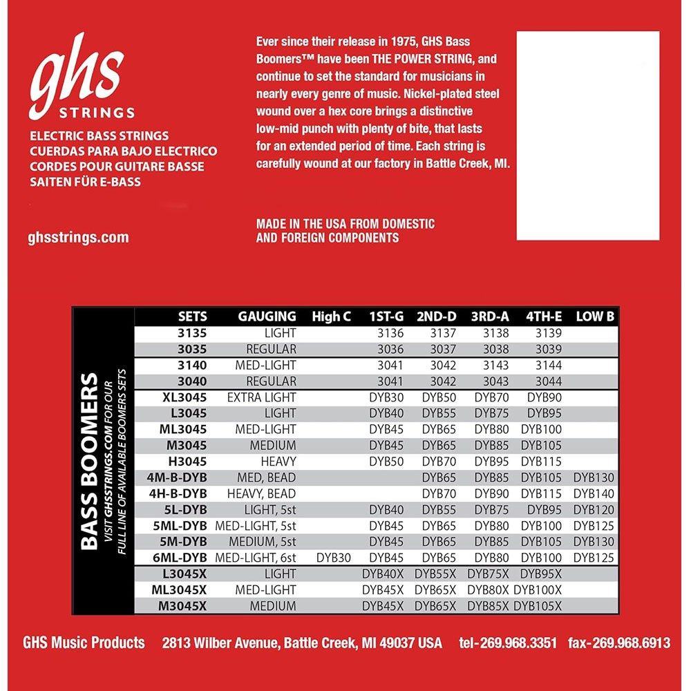 GHS Bass Boomers 4-String Light Roundwound Electric Bass Strings (40-95)